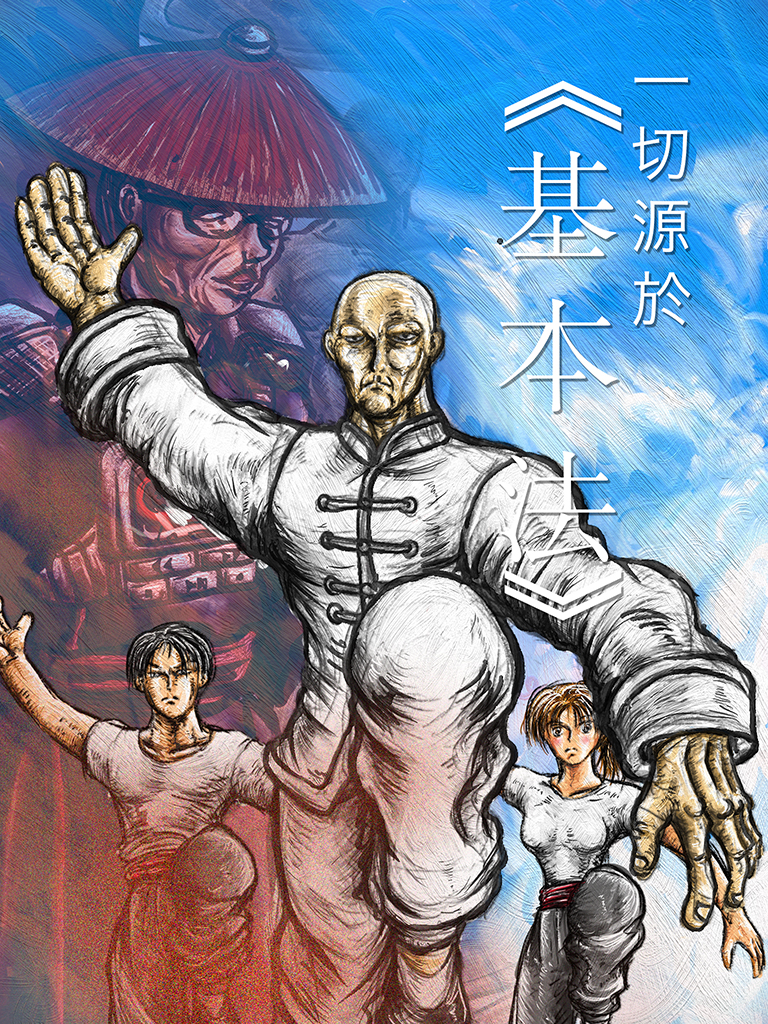 日光之下,師父在公園裡,正在教徒弟功夫。他一邊揮拳,一邊推銷其門派,《基本法》武功的好處,最後以幾隻大字作結: