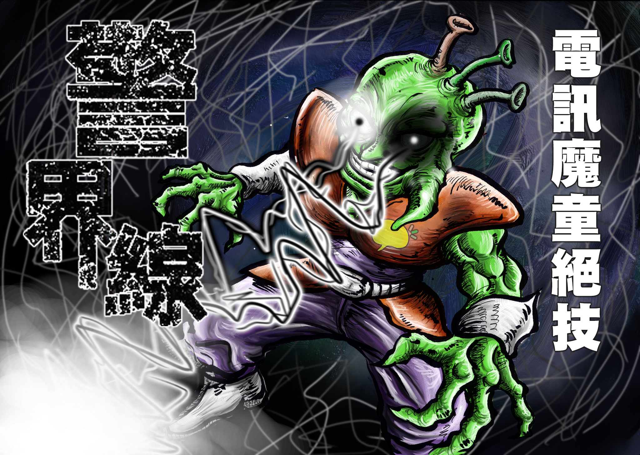 電訊魔童的成名絕技,雙眼分別射出白色和黑色的激光。黑白分明是武者最重要的界線,但若打破警界線,黑白互交合一,便會產生化學作用,交錯之下,激光威力便會變成無限大。