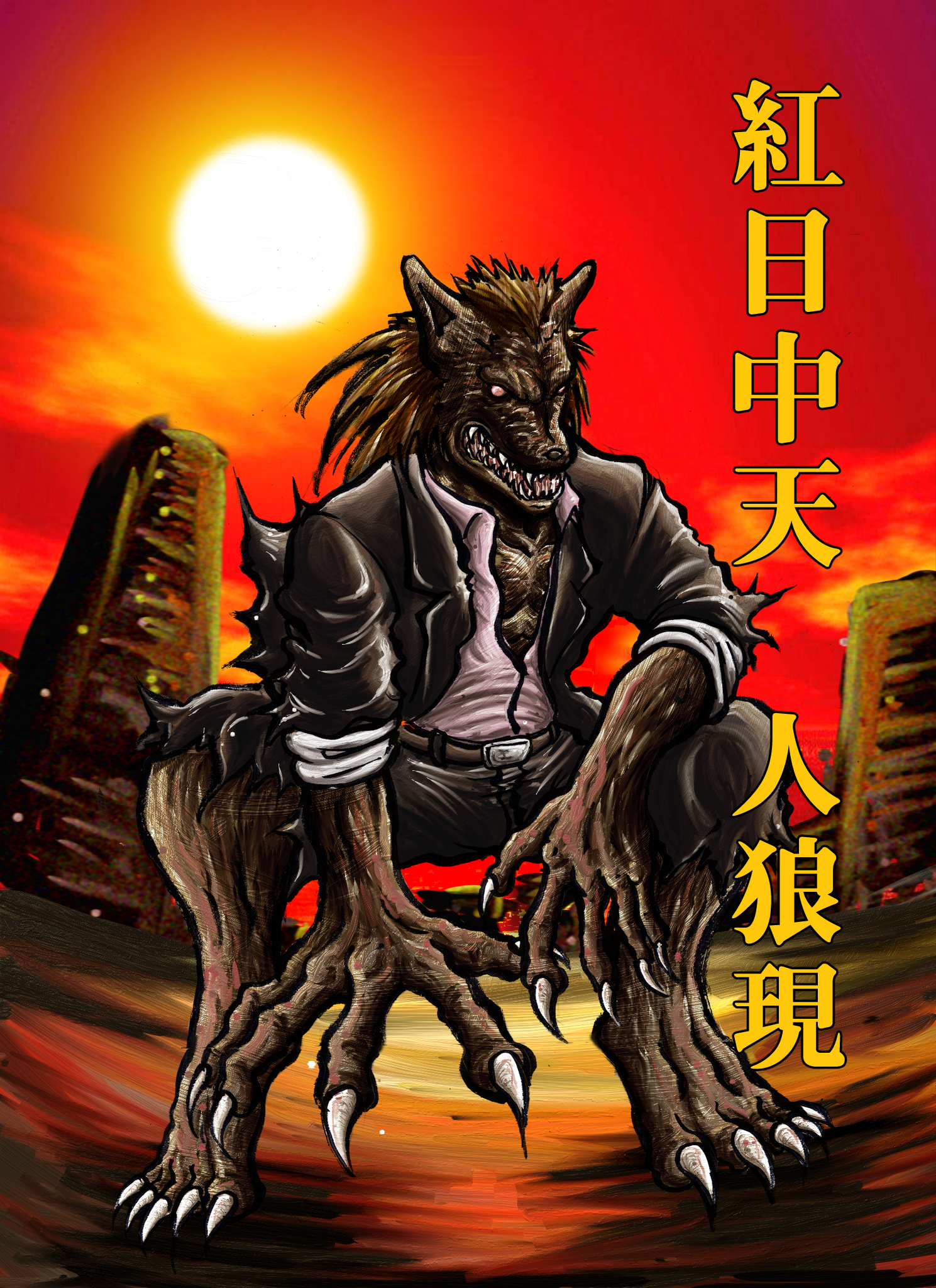 通常而言,人狼都是在月圓之夜才會變身。但傳說中的紅日之人狼,卻是在紅太陽高高掛著,將天空照至紅得不可再紅之時,才會變身成人狼。這種人狼戰鬥力之無匹,可媲美超人的地產霸拳。只是紅日中天並不是自然的天文現…